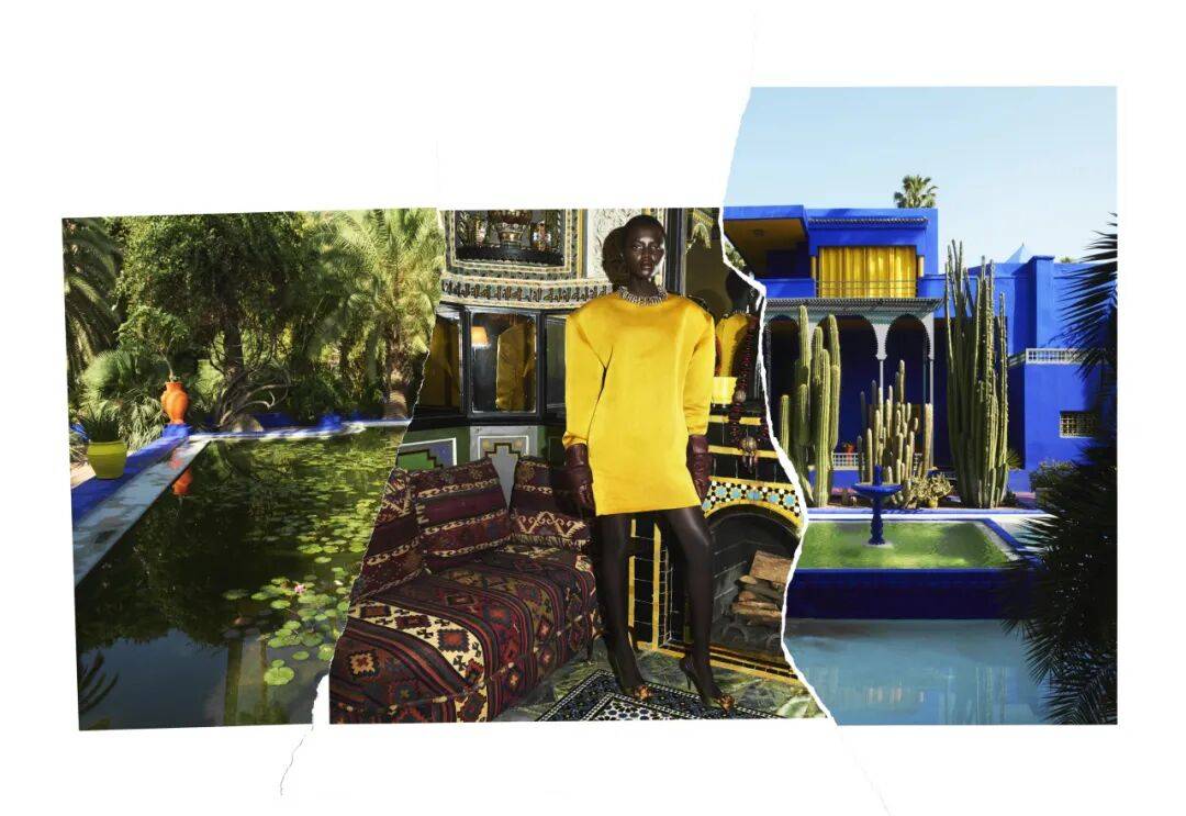 圣罗兰2025 冬季系列,品牌创意总监Anthony Vaccarello 回到了马拉喀什的Villa Oasis——伊夫·圣罗兰先生曾经的度假居所。于此,圣罗兰先生邂逅了属于马拉喀什的色彩:赭红的墙壁、浓烈的彩釉砖、傍晚洋红色的光晕,以及花园深邃的马约尔蓝。色彩间的对比碰撞出极致张力,亦塑造了伊夫·圣罗兰先生的美学视野。
