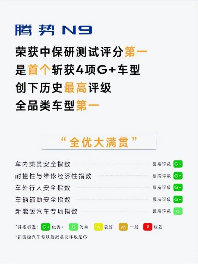 腾势N9登顶中保研全品类安全榜首,以“4G+1G”全优大满贯创下历史最高评级,将“安全是最大的豪华”理念具象为每一次出行的安心守护。这份成绩不仅是权威机构对其产品实力的高度认可,更重塑了中国高端新能源汽车的安全标准,印证了真正的豪华不在于配置堆砌,而在于对每一次出行的极致守护。